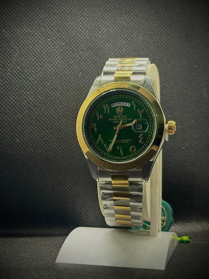 The Day-Date is a premium watch known for its timeless design and top-quality craftsmanship. It was the first wristwatch to show both the full day and date on the dial. Made from fine materials like gold or platinum, it features the signature President-style bracelet. Often seen on the wrists of leaders and achievers, this watch is a symbol of success, elegance, and reliability. Its bold look and smooth performance make it a standout timepiece in luxury watchmaking.