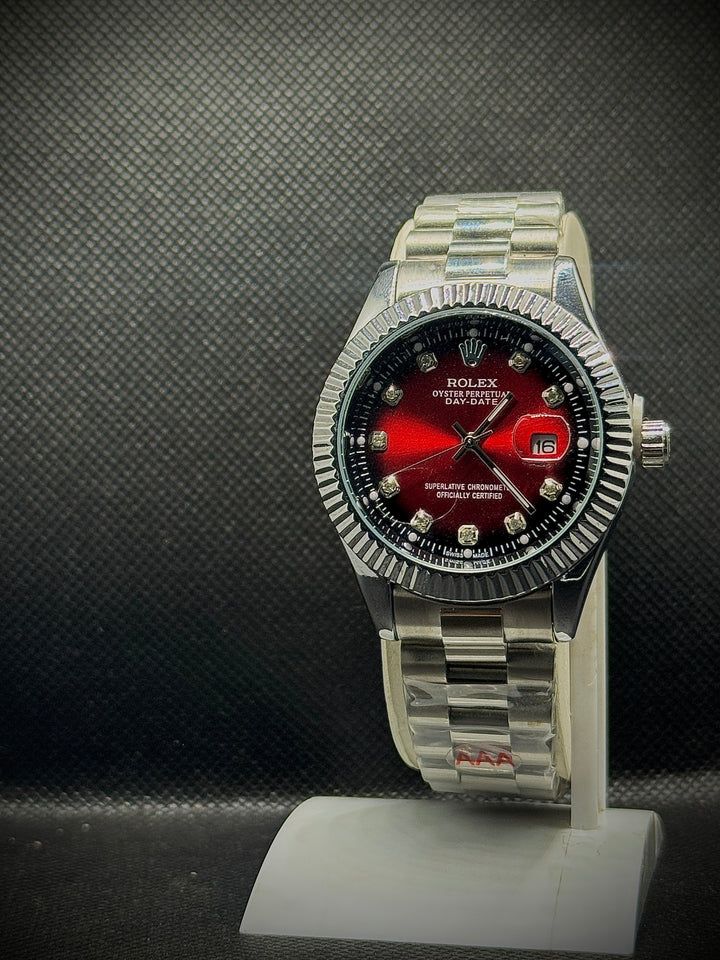 The Day-Date is a premium watch known for its timeless design and top-quality craftsmanship. It was the first wristwatch to show both the full day and date on the dial. Made from fine materials like gold or platinum, it features the signature President-style bracelet. Often seen on the wrists of leaders and achievers, this watch is a symbol of success, elegance, and reliability. Its bold look and smooth performance make it a standout timepiece in luxury watchmaking.